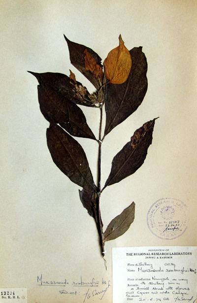 | Remarks: Erect , stem hairy above , leaves short petioled oblong - lanceolate glabrous above , corolla silky , tube narrow . |