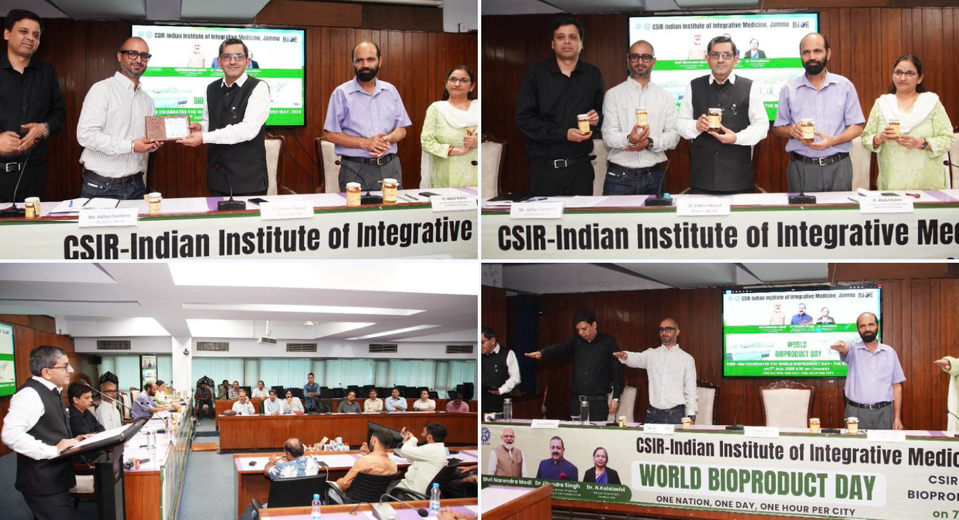 The CSIR-Indian Institute of Integrative Medicine (CSIR-IIIM), Jammu, celebrated World Bioproduct Day today with a simple yet impactful event aimed at promoting awareness of bioproducts and their role in sustainable development. The event brought together scientists, students, startups, and key stakeholders to highlight the critical importance of bioproducts in achieving a cleaner, greener, and more economically vibrant future.