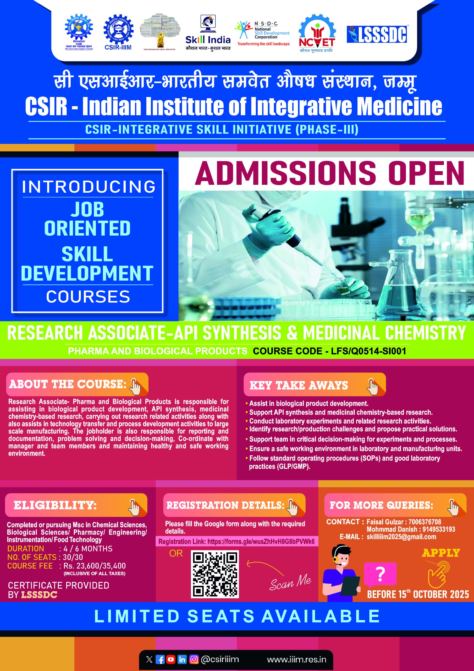 - RESEARCH ASSOCIATE-API SYNTHESIS & MEDICINAL CHEMISTRY (PHARMA & BIOLOGICAL PRODUCTS) [COURSE CODE – LFS/Q0514-SI001]