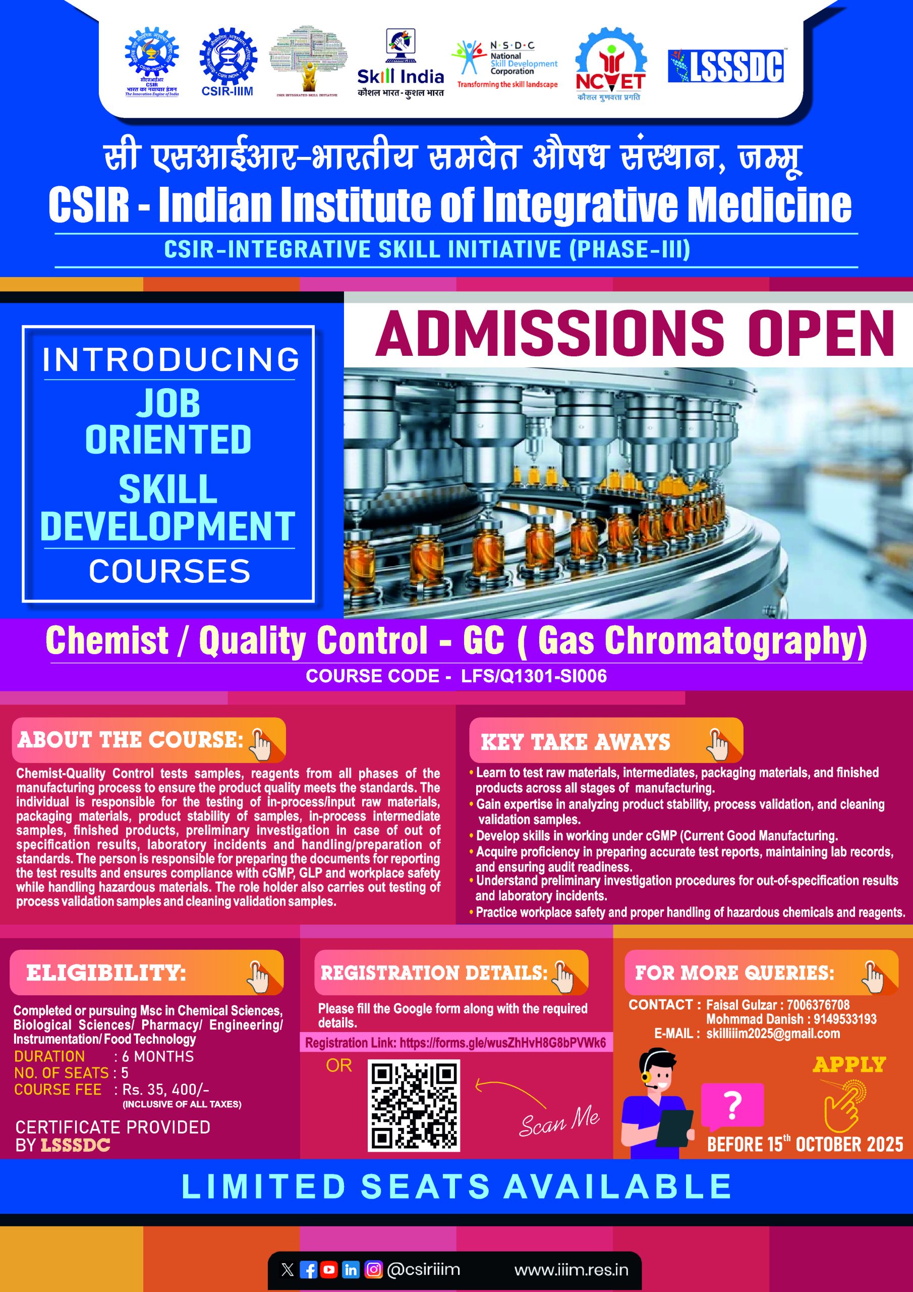 - CHEMIST/QUALITY CONTROL-GAS CHROMATOGRAPHY (GC) [COURSE CODE – LFS/Q1301-SI006]